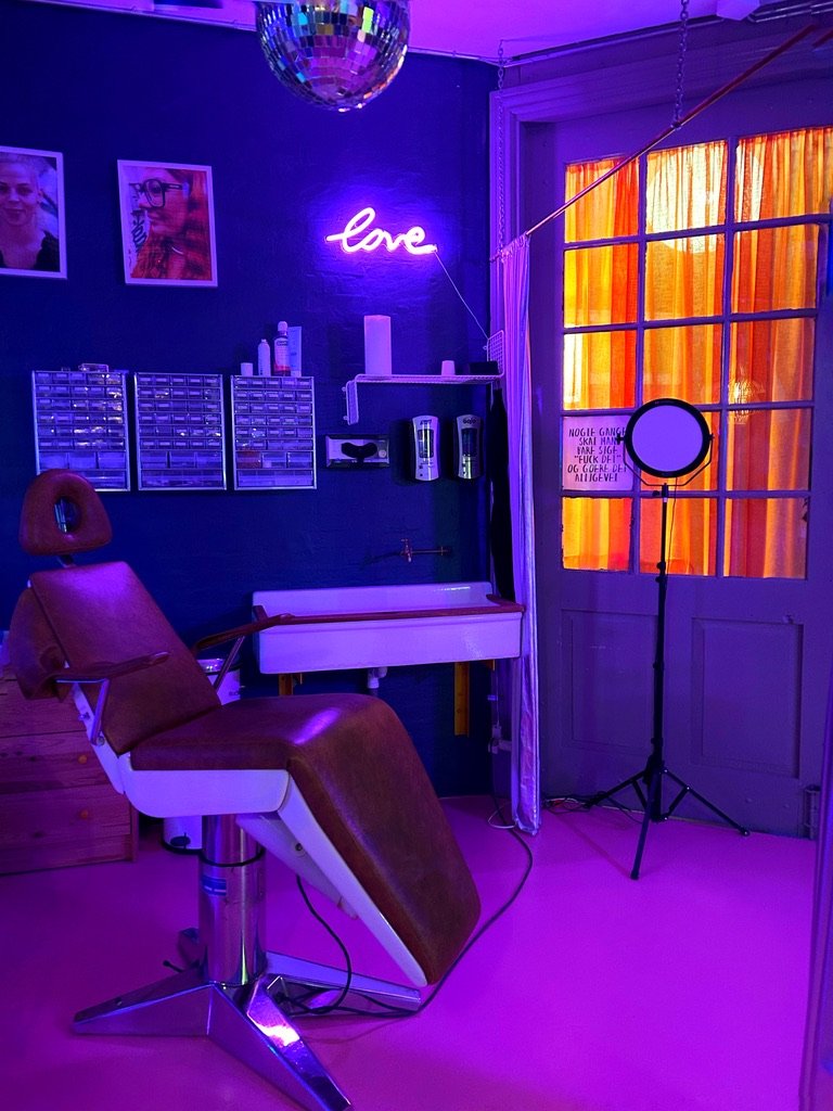 Piercing hos mig foregår i professionelle & trygge omgivelser. Mit studie er indbydende, hyggeligt & farverigt og du er velkommen.